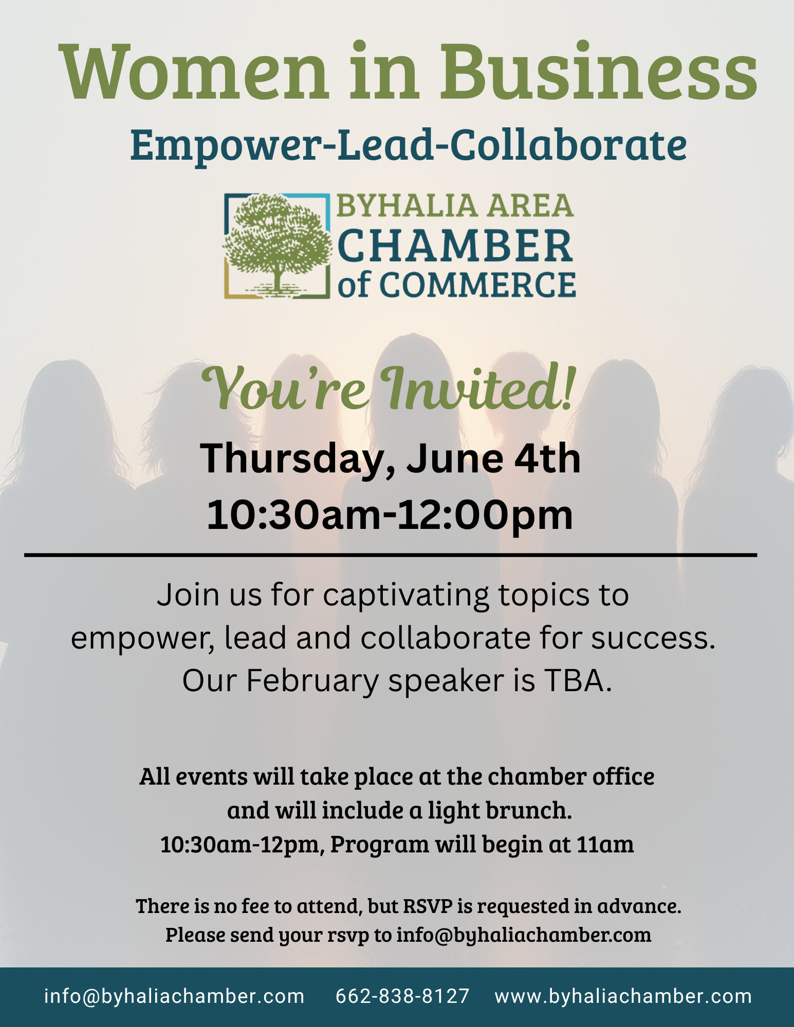 Please join us for our Women in Business series on Thursday, June 4th 10:30am-12:00pm. This series will feature captivating topics to empower, lead and collaborate for success. Our June speaker is to be announced. All events will take place at the Chamber Office (2452 Church Street) and will include a light brunch and networking 10:30am-11:00am, program will begin at 11:00am and conclude at noon. There is no fee to attend, but RSVP is requested in advance. Please send your rsvp to info@byhaliachamber.com.